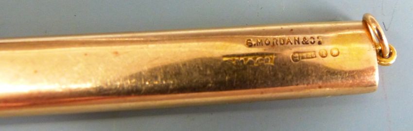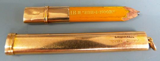 Samson Mordan 15ct gold travelling pencil, London 1911, 8.3cm long when closed, weight without pencil 8.5g