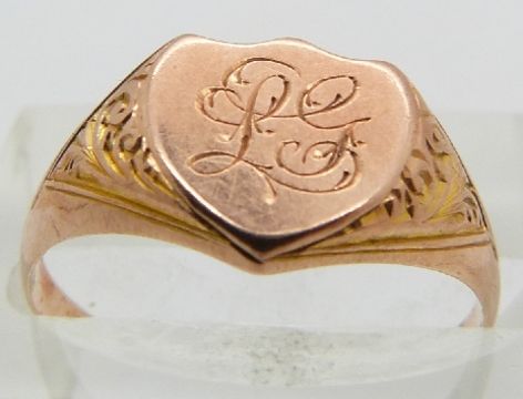 A 9ct rose gold signet ring, Birmingham 1883, size M, 1.3g.