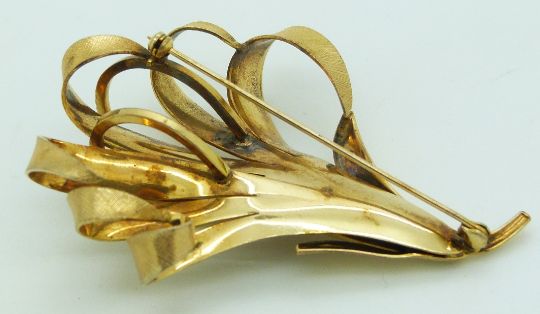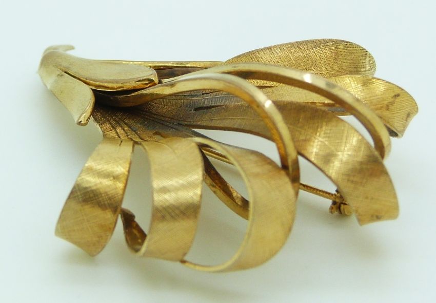 A yellow metal brooch/ pendant in a stylised foliate design, 13.4g