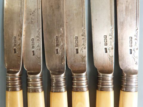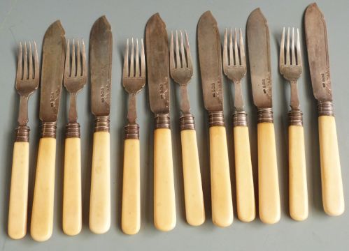 Six place setting fish eater set comprising six each forks and knives, Sheffield 1906 maker Allen & Darwin, weight 525g all in