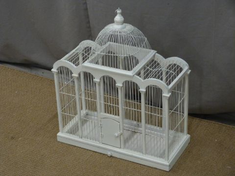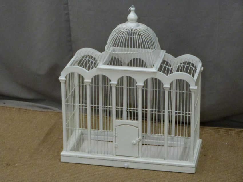 White painted birdcage, W55 x D24 x H65cm