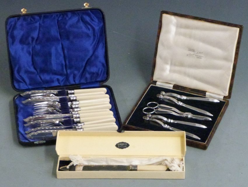 Silver plated ware to include salver, serving dishes, candelabra, pair of candlesticks, cased and loose cutlery, cut glass etc