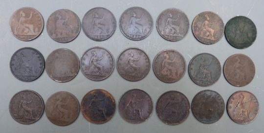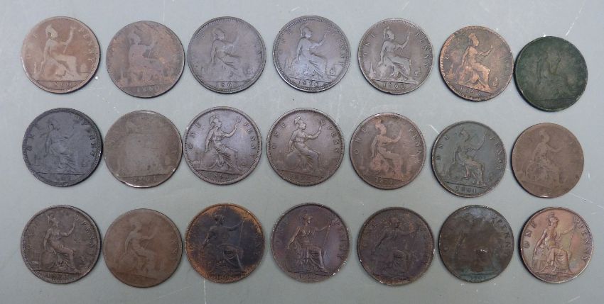A collection of 21 Victorian pennies comprising largely young head examples to include 1860 toothed borders, 1860 beaded border, 1874 etc various grades fine upwards, with 1901 veiled head VF and EF