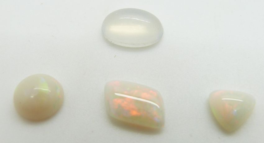 Three loose opal cabochons and a loose moonstone cabochon