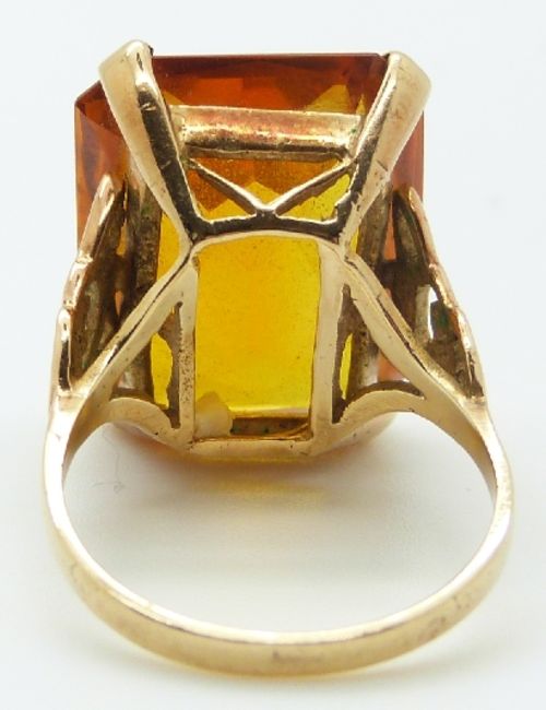 A 9ct gold dress ring set with a large citrine, 8.5g, size N