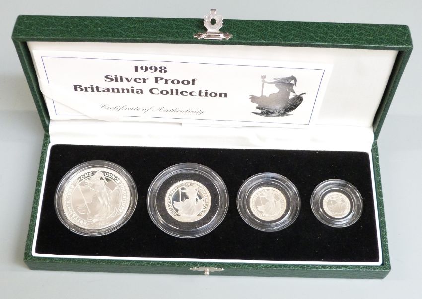 1998 Royal Mint Silver Proof Britannia Collection, cased with certificates
