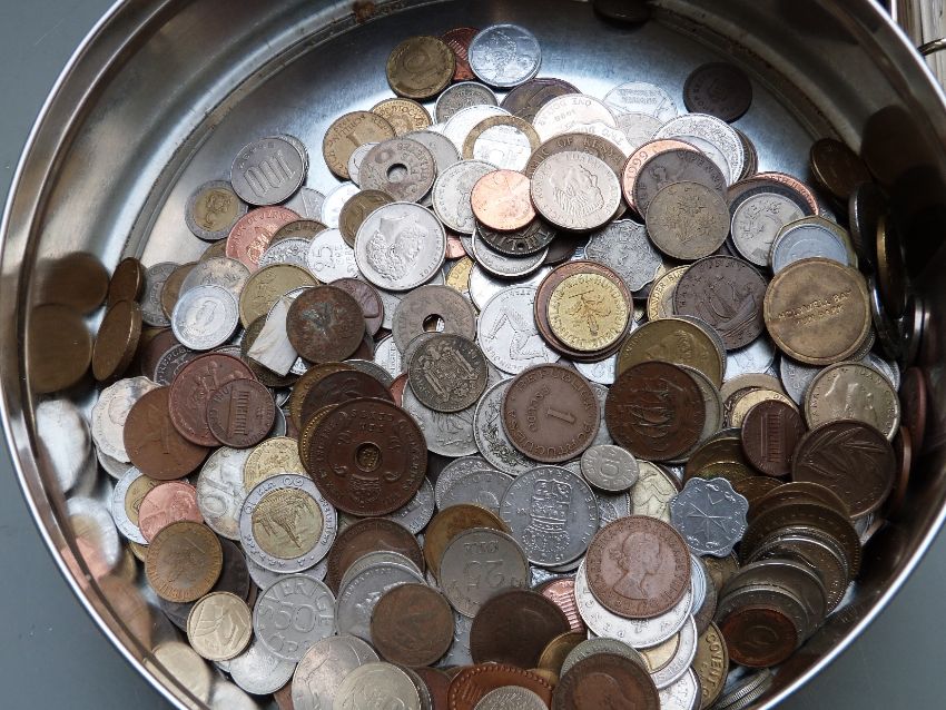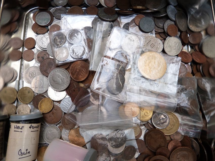 A collection of UK and overseas coins, some silver, together with 2002 World Coins book and a Seaby's Coin & Medal Bulletin for most of 1969