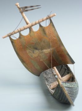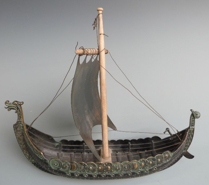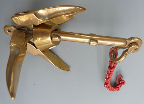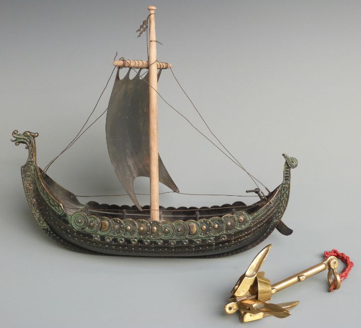 Aagaard, Copenhagen, brass / bronze Viking ship, length approximately 40cm long and 35cm high together with a brass folding anchor
