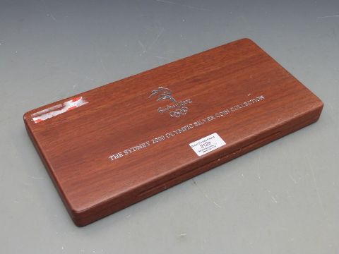 The Sydney 2000 Olympic Silver Coin Collection comprising sixteen crown sized coins featuring emblems of Australia, in deluxe wooden box