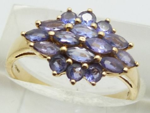 A 9ct gold ring set with tanzanites and a 9ct gold ring set with amethysts and diamonds, 5.2g