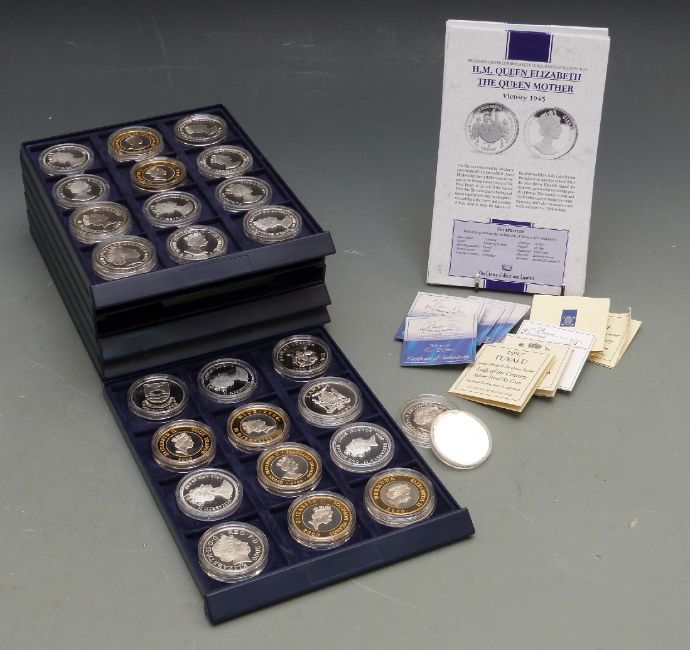 Twenty six silver crown sized Royal commemorative coins in a collector's tray, some with certificates