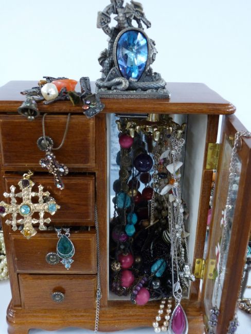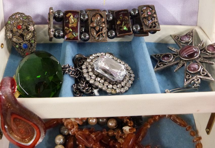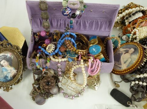 A collection of costume jewellery including beads, brooches etc