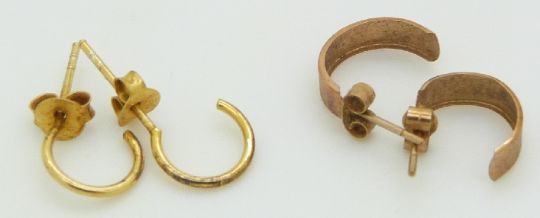 Three 9ct gold earrings (3.3g) and a pair of silver gilt earrings