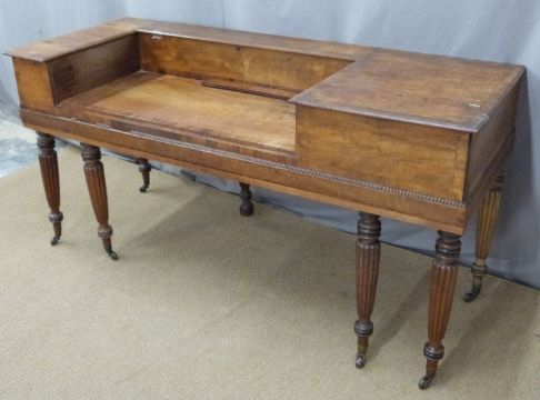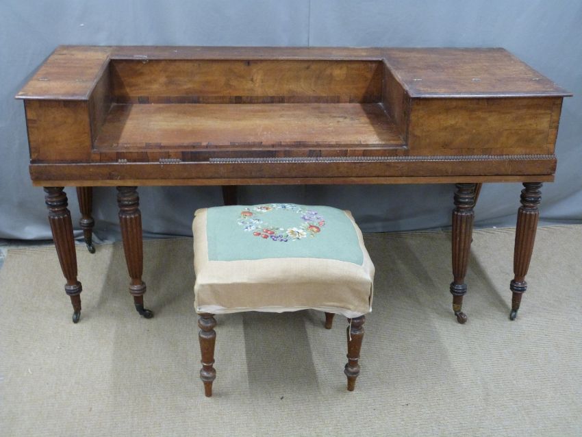 19thC mahogany piano converted to a dressing table length 173cm with stool and swing frame mirror