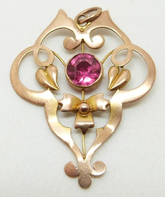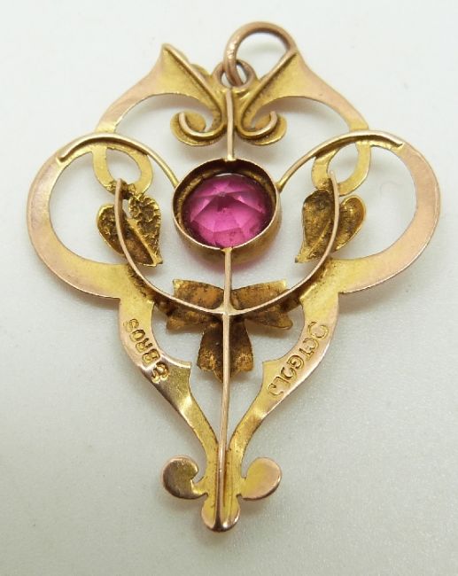 Art Nouveau 9ct gold pendant set with a pink topaz by S.Bros, 1.5g