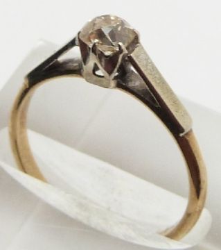 A yellow metal ring set with an old cut diamond measuring approximately 0.4ct, 2.0g, size N