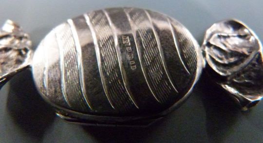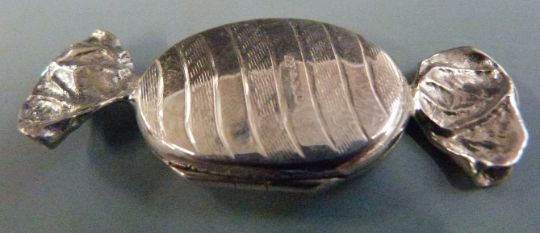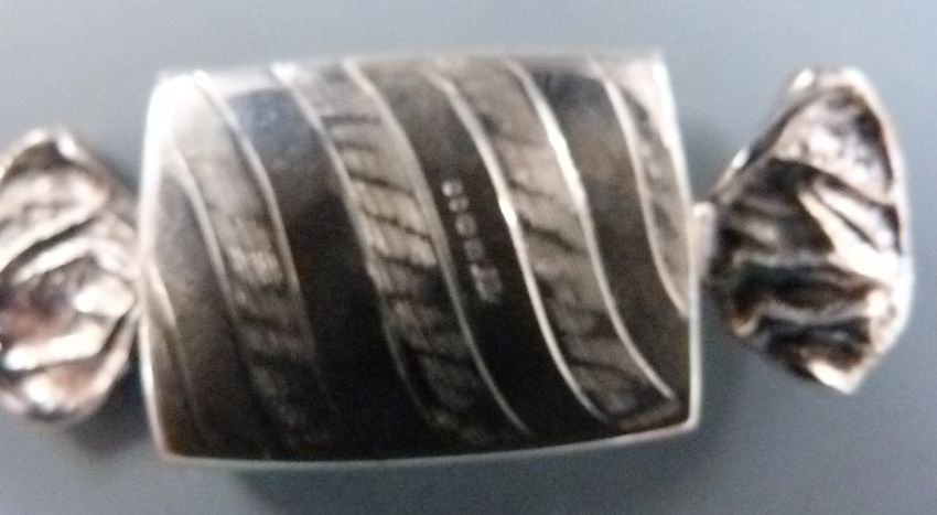 Two novelty hallmarked silver trinket pots formed as sweets, length 4.5cm weight 17g