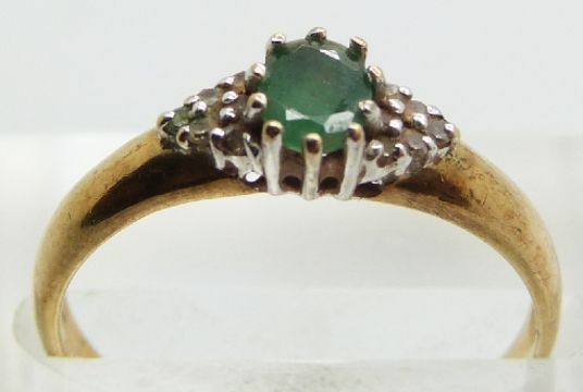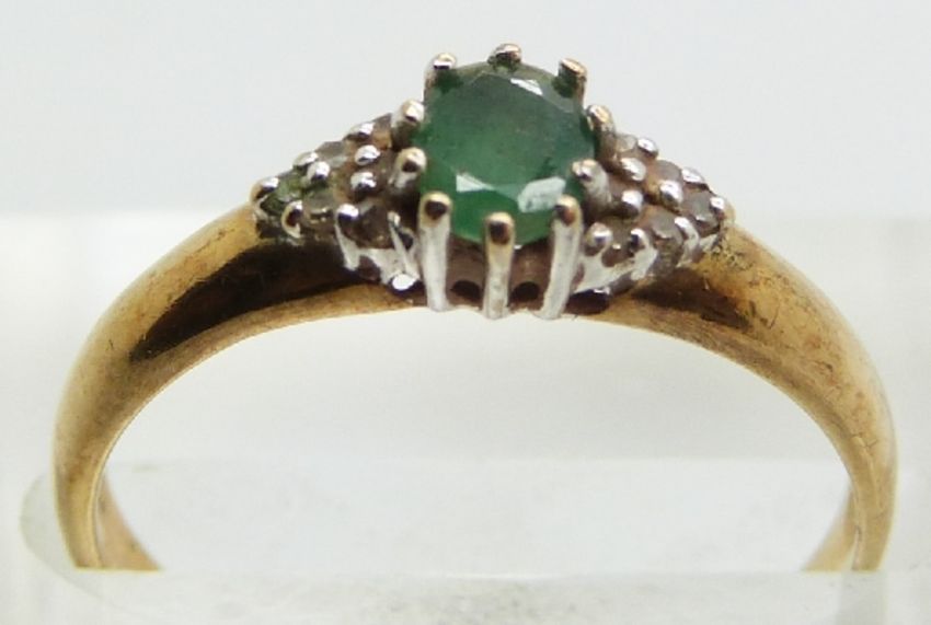 A 9ct gold ring set with an emerald and diamonds, 1.6g, size N