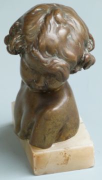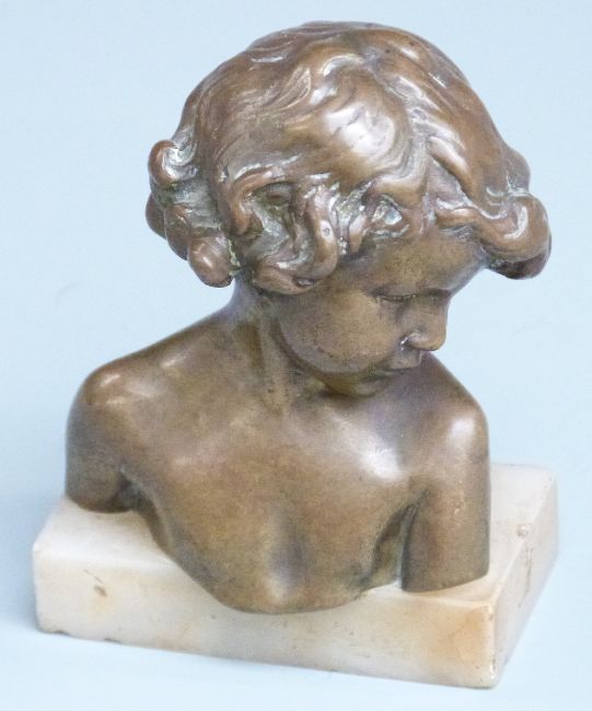 Art Deco bronze bust on marble base, impressed J.Camus JP439, 10cm tall