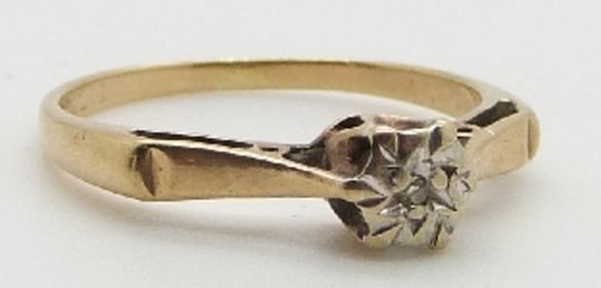 A 9ct gold ring set with a diamond, 1.5g, size K