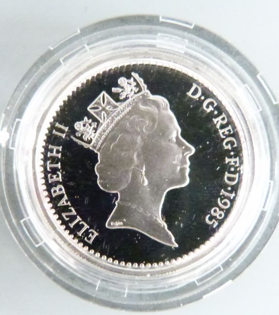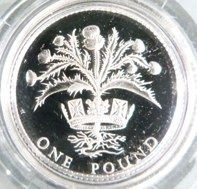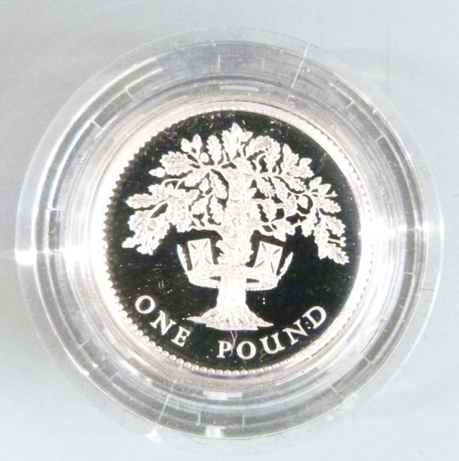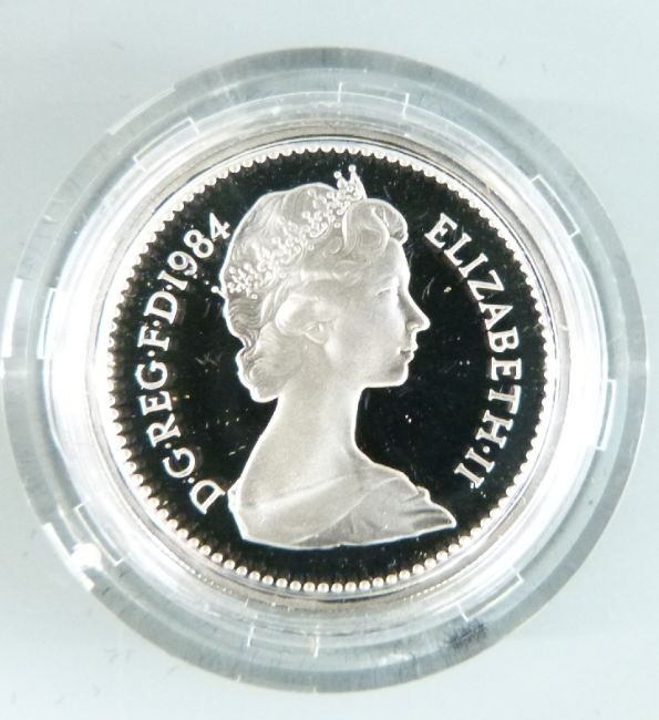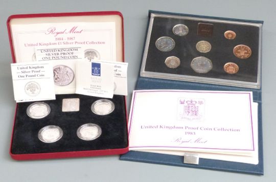 A cased set of four Royal Mint UK silver proof £1 coins 1984-1987, together with a 1983 proof coin collection, with certificates