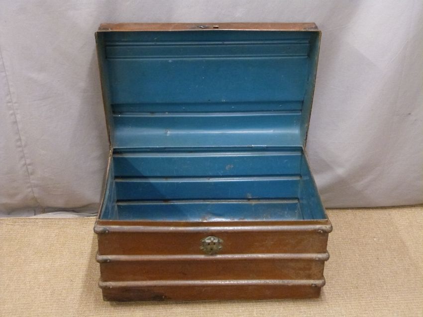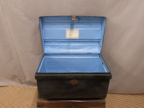 Two metal travelling trunks one with GWR to top, width of larger 71cm