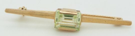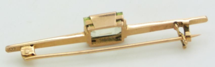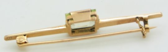 A 14k gold brooch set with a rectangular spinel