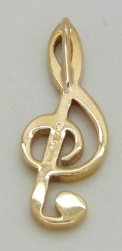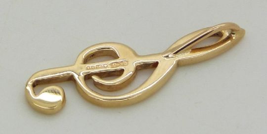 A 9ct gold pendant in the form of a musical note, 2.2g