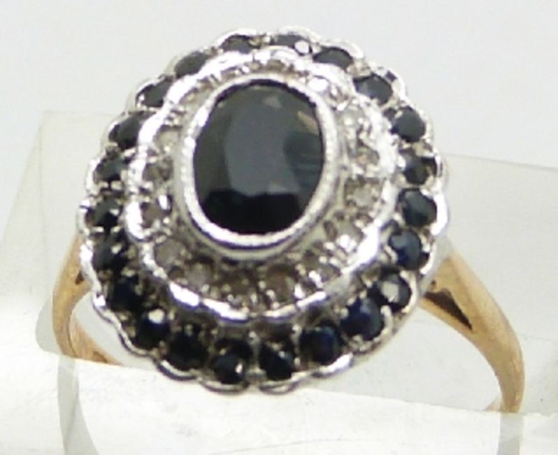 A 9ct gold ring set with sapphires and diamonds, 4.3g, size N