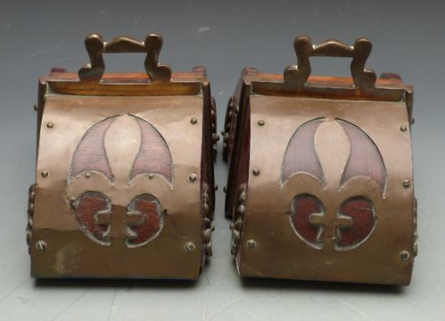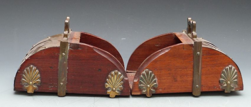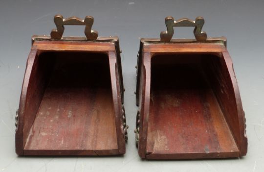 19thC Spanish brass stirrups with relief moulded decoration