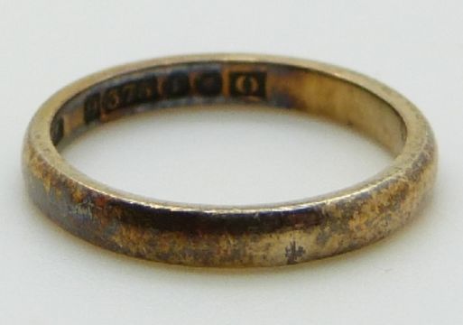 A 9ct gold ring, size J, 2.3g.