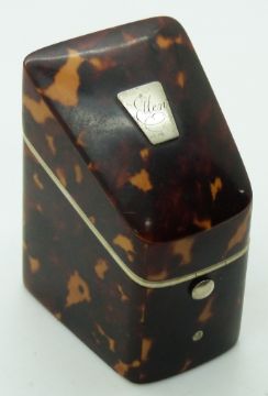 19th/20thC miniature tortoiseshell and ivory sewing etui in the form of a Georgian knife box by W Lund, 24 Fleet Street, H5cm
