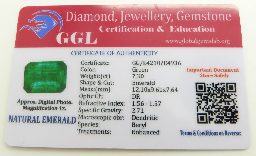 A loose emerald cut emerald measuring approximately 7.3ct