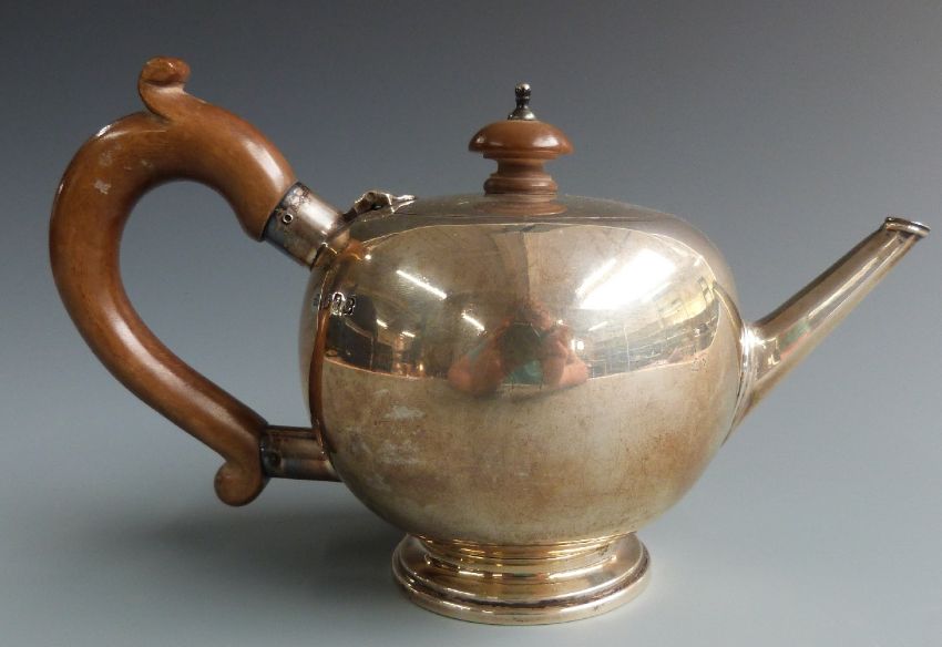 George V Irish hallmarked silver three piece bachelor's teaset, the teapot of bullet shape, Dublin 1918 maker Wakely & Wheeler, length of teapot 22cm, weight 577g all in