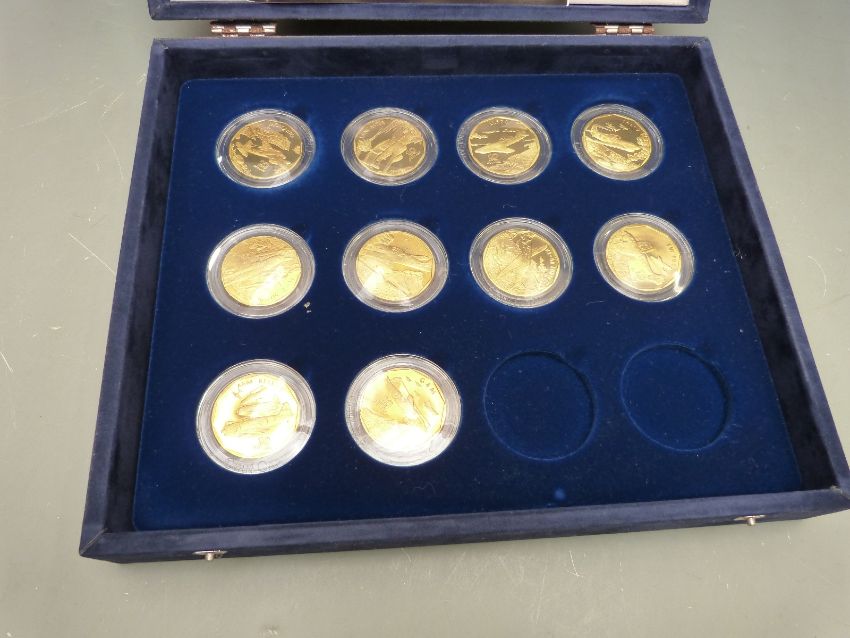 Legendary Aircraft of World War II ten dollar coin collection, comprising twenty two Marshall Islands 'crown sized' solid brass coins in collector's case with booklet