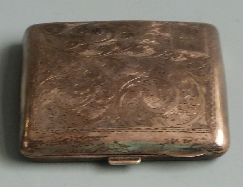 Hallmarked silver cigarette case with engraved decoration, weight 75g