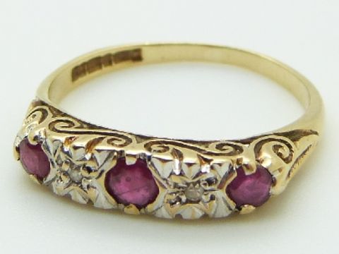 A 9ct gold ring set with rubies and diamonds, 1.8g, size K