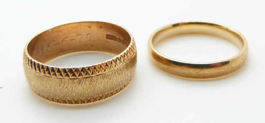 Two 9ct gold rings/ wedding bands, 6.2g.