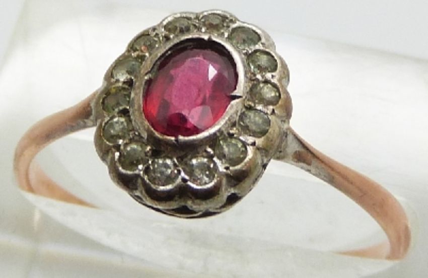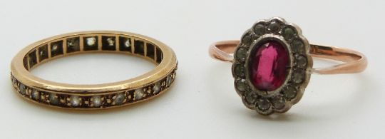 A 9ct gold ring set with paste and a 9ct gold eternity ring, 4.7g.