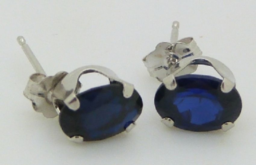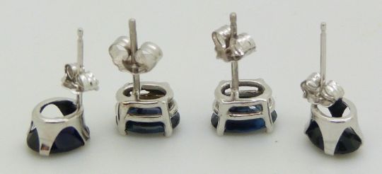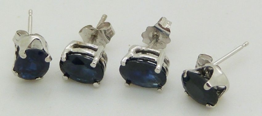 Two pairs of 14ct white gold earrings set with oval cut sapphires
