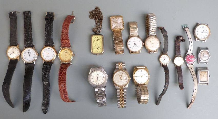 Fifteen various ladies and gentleman's wristwatches including Tissot Seastar automatic wristwatch with day and date aperture, on stainless steel bracelet, Accurist, Ingersoll, Sekonda, Services, IGO, Avia etc.