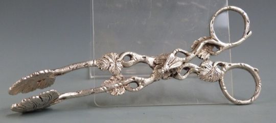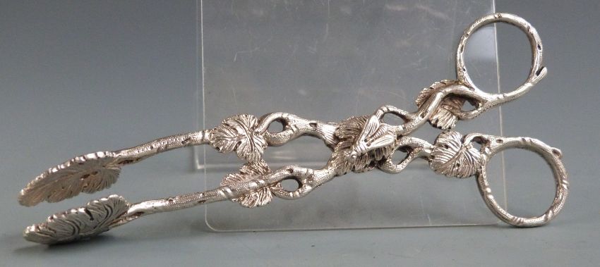 Pair of Victorian hallmarked silver sugar nips with foliate decoration, the hinge surmounted by a bee, London 1837 maker Charles Rawlings and William Sumner, length 13cm weight 56g