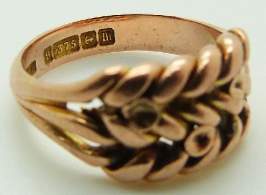 Victorian 9ct rose gold keeper ring, Birmingham 1886, size M, 4.7g.