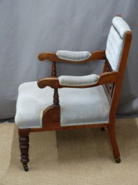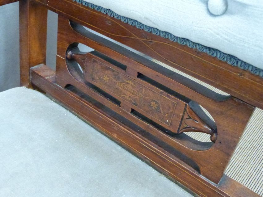 Edwardian inlaid mahogany upholstered armchair