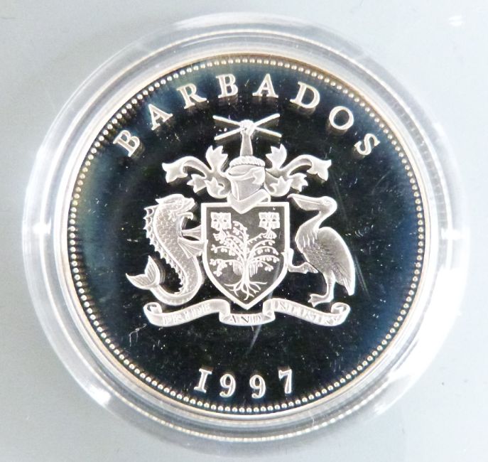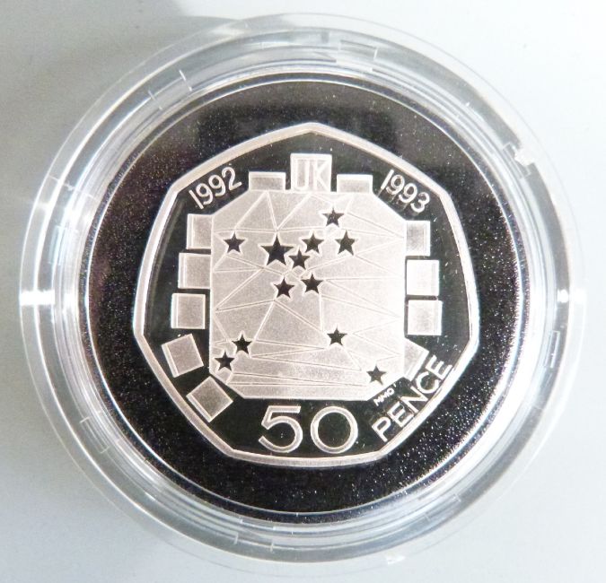 Various silver proof coins in a Westminster collector's case, to include crown sized examples, £2, £1, fifty pence etc, nineteen in all