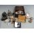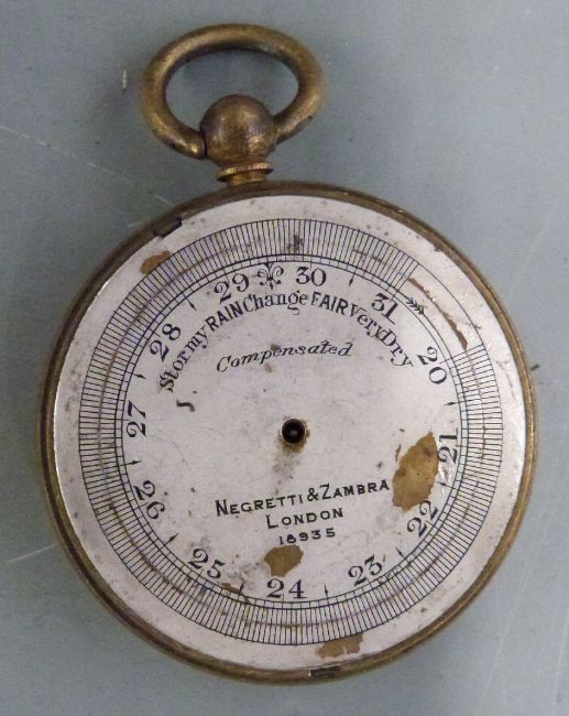 19thC bronze bell, mineral samples including raw amber, spirit flask, badges, stopwatch, Negretti and Zambra barometer, Masonic jewel for Gloucestershire in case, Easy Splice marlin spike, obelisk, badges, Japanese sword fitting, Japanese lacquer box, stereoscopic hand wound slide, bosun's whistle, penknives etc.