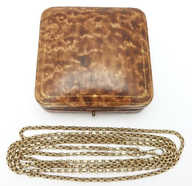 A 9ct gold guard chain in vintage box, 82cm drop, 51.8g