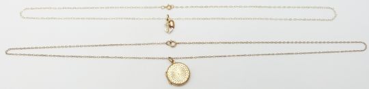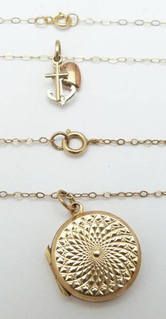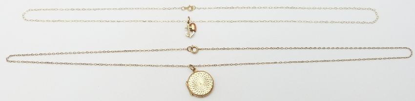 A 9ct gold back and front locket and 9ct gold chain, 1.5 x 1.5cm, 4.0g