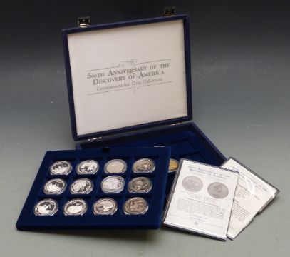 Westminster Coins 500th Anniversary of the Discovery of America comprising 14 largely 'crown sized' coins, eight being silver examples, in collection case, with certificates