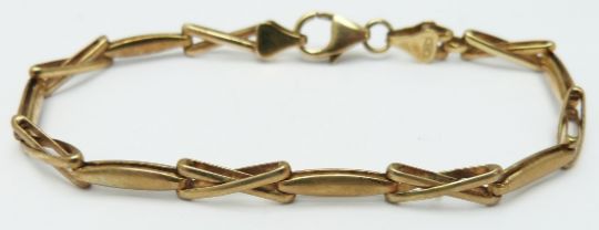 A 9ct gold bracelet made up of cross and elongated links, 6.3g